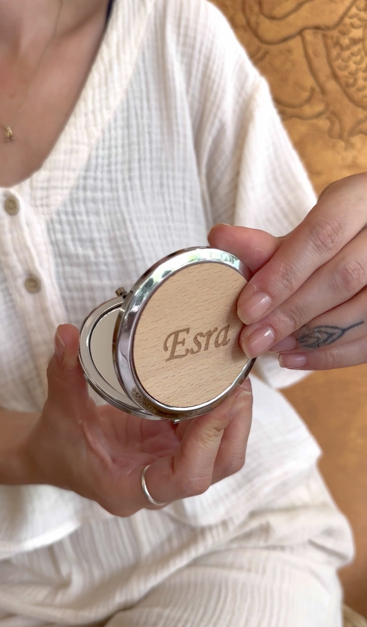 Bir bayanın yanından ayırmayacağı ve her daim karşısında vakit geçirmekten keyif aldığı ayna şimdi onun adına özel bir hal aldı. Ele rahatça sığabilen ve lazerle şekillendirilen isimde yıllarca asla kazınma ve silinme olmayacaktır.