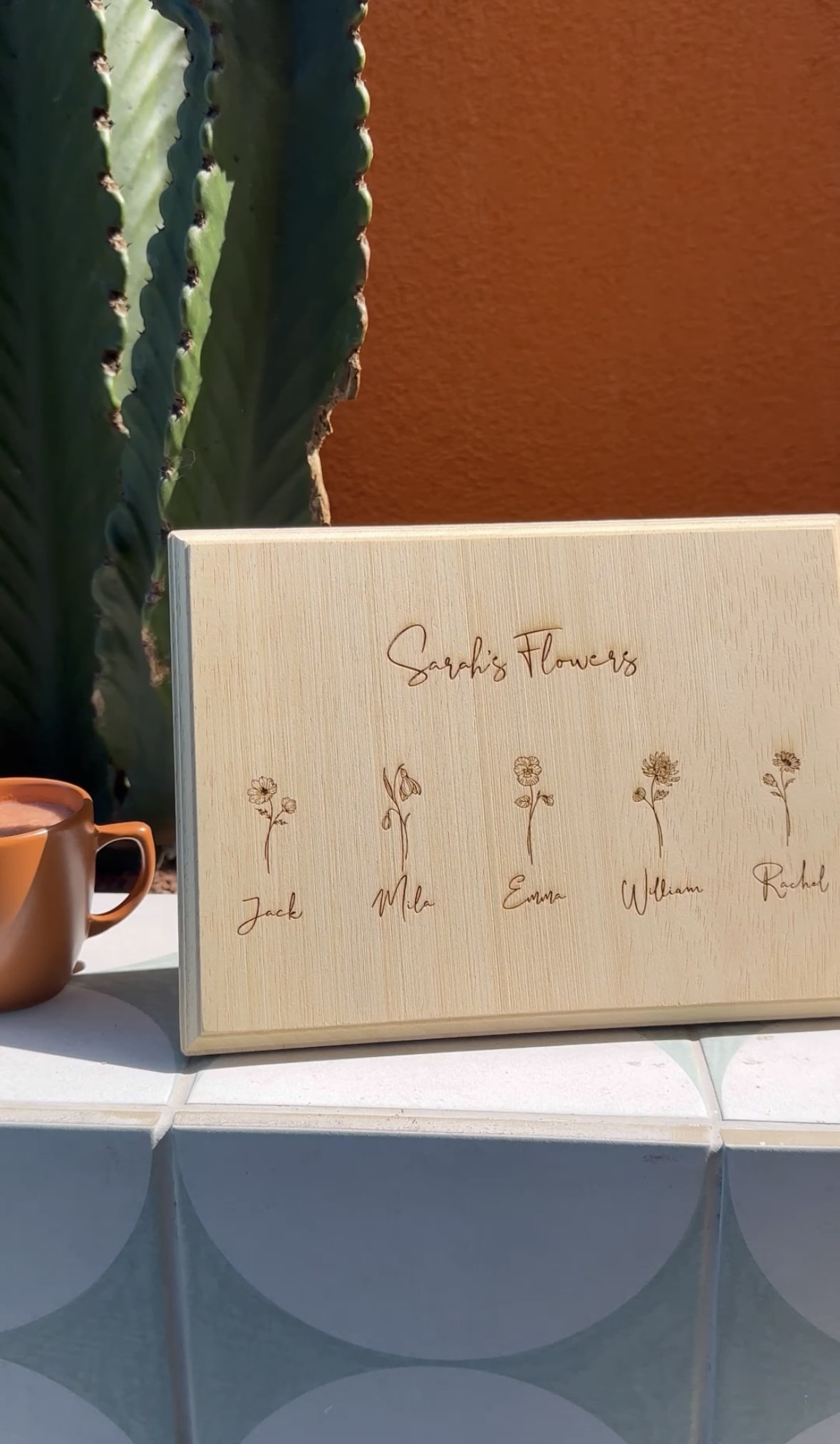 Çocuk ve Torun İsimlerinden oluşan Doğum Çiçeği Tasarımlı Natural Ahşap Özelleştir