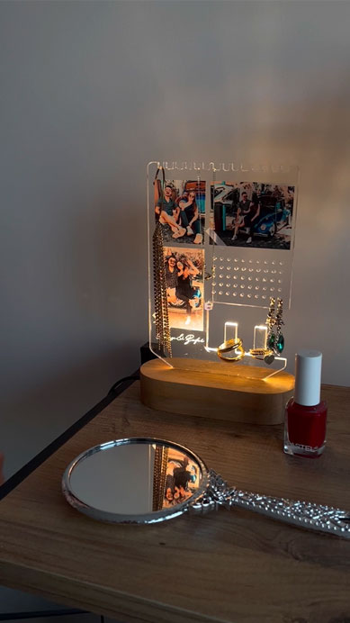 Fotoğraf baskılı takı aksesuar askılı dekoratif led lamba, sevdiklerinize hediye edebileceğiniz gibi kendi kullanımınız için de tercih edebileceğiniz ve oldukça şık bir tasarıma sahip hediye alternatifidir.
