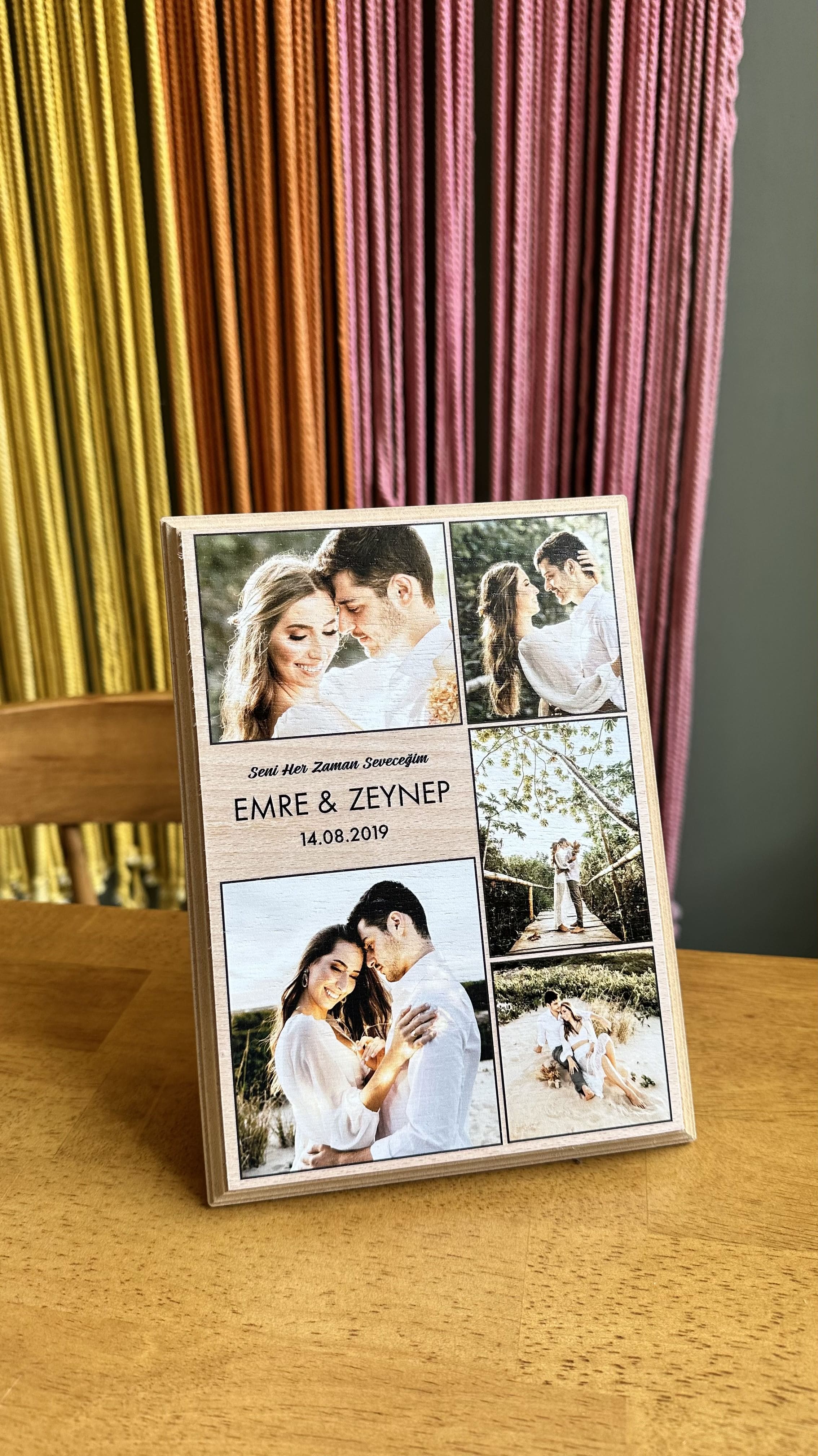 Kişiye Özel 5 Fotoğraf Kolajlı Hediye Mini Ahşap Foto Özelleştir