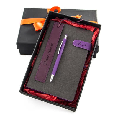 Kız Arkadaşa Hediye Defter Kalem Ayraç Setini kişiye özel kılan özelliği ise sette yer alan her ürünün üzerine lazer işleme yöntemi ile isim yazılıyor olması. Hem 224 sayfalık not defterine, hem mor renkli tükenmez kaleme hem de hakiki deriden üretilen mor renkli kitap ayracına kız arkadaşınızın ismini yazdırma şansına sahipsiniz. İsim yazılı kalem, not defteri ve ayraç, hediye olarak alacağınız yakınınızın kendisini özel hissetmesini sağlayacak.
