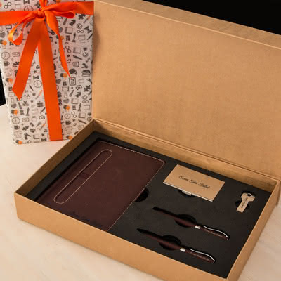 Ofis Çalışanlarına Hediye Exclusive Kurumsal Sette, 200 sayfadan oluşan bir not defteri, biri tükenmez diğeri roller olmak üzere 2 adet kalem, bir metal kartlık ve bir adet de USB bellek bulunuyor. Kurumsal bir şirkette çalışan yakınınızın ofisteki tüm ihtiyaçlarına cevap verir nitelikteki bu ürün, isim yazılı kişiye özel bir hediye seti olma özelliğini taşıyor.