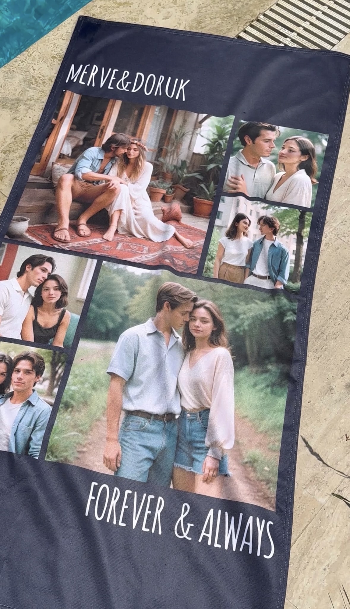 Sevgiliye Hediye Fotoğraf Kolajlı Plaj Havlusu Özelleştir