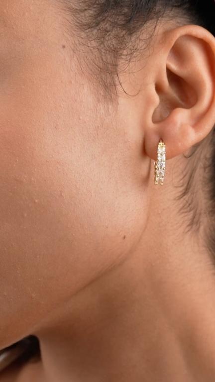 Bu küpeler, gümüş malzeme ve parıldayan zirkon taşlarıyla dizayn edilmiştir. Zarif halka şekli, modern ve stil sahibi bir görünüm sunarken, zirkon taşların ışıltısı ise göz alıcıdır. Kendinizi veya sevdiklerinizi şımartmak için şık bir seçenek olan bu küpeler, tarzınıza sofistike bir dokunuş ekler.