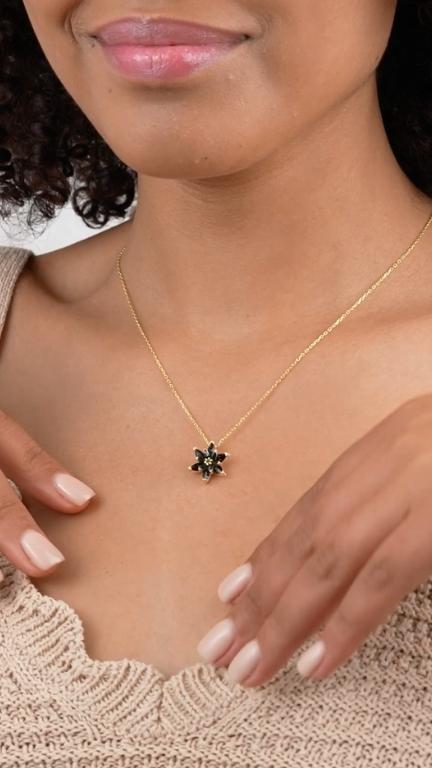 Siyah Lotus Zarif Gümüş Kolye, herbiri birer pırıltı olan siyah zirkon taşları ve gümüş detaylarıyla göz kamaştırıyor. Bu benzersiz ve etkileyici tasarım, özel biri olduğunu hissettirmek istediğiniz kişiye tam da istediğiniz duyguyu aktaracak. Kolyenin yüzeyi, her yerde öne çıkacak parlaklık sağlayan 925 ayar gümüşten yapılmıştır.