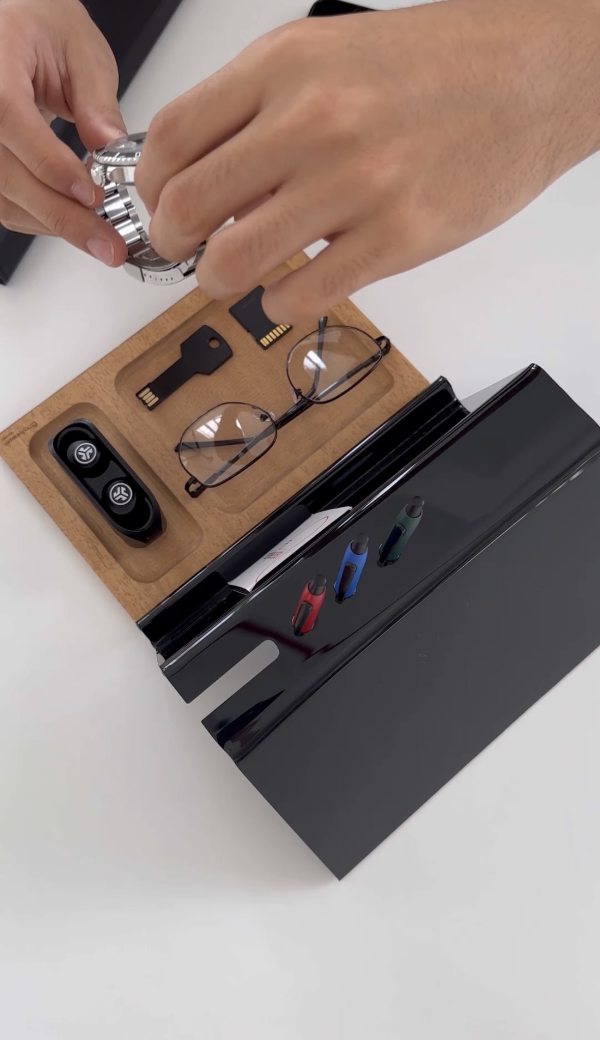 Cep telefonu standı olarak kullanım sağlayabileceğiniz bu düzenleyici, saat ya da bileklik gibi aksesuarların konumlandırılmasına da imkan sunmaktadır. İki farklı bölmeye sahip olan bu düzenleyici, ofis içerisinde gerekli olan araçların düzenli bir şekilde yerleştirilmesini sağlamaktadır. Düzenleyicinin üst kısmı, kalemlerin yerleştirilmesi için ayrı alanlara sahiptir. Satın alacağınız bu masa üstü düzenleyicisi ile birlikte üç adet tükenmez kalemde tarafınıza gönderilmektedir. Özel hediye paketi ile birlikte gönderimi gerçekleştirilecek olan bu ürünü, gün içi kargo seçeneği ile satın alabilirsiniz.