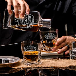 Eşinize olan sevginizi, ismine özel tasarlanmış bir hediyeyle göstermek istemez misiniz? Tamamen el işçiliğiyle üretilen 1 adert karaf, 2 adet kadeh ve viskiyi sek seven ama soğuk içmek isteyenler için düşünülmüş 12 adet viski taşı bulunan bu sete bayılacaksınız. Karaf ve kadEhler üzerindeki yazılar lazer işleme tekniği ile yazıldığından yıllarca silinmeyecek, kalitesiyle uzun yıllar göz doldurmaya devam edecek.